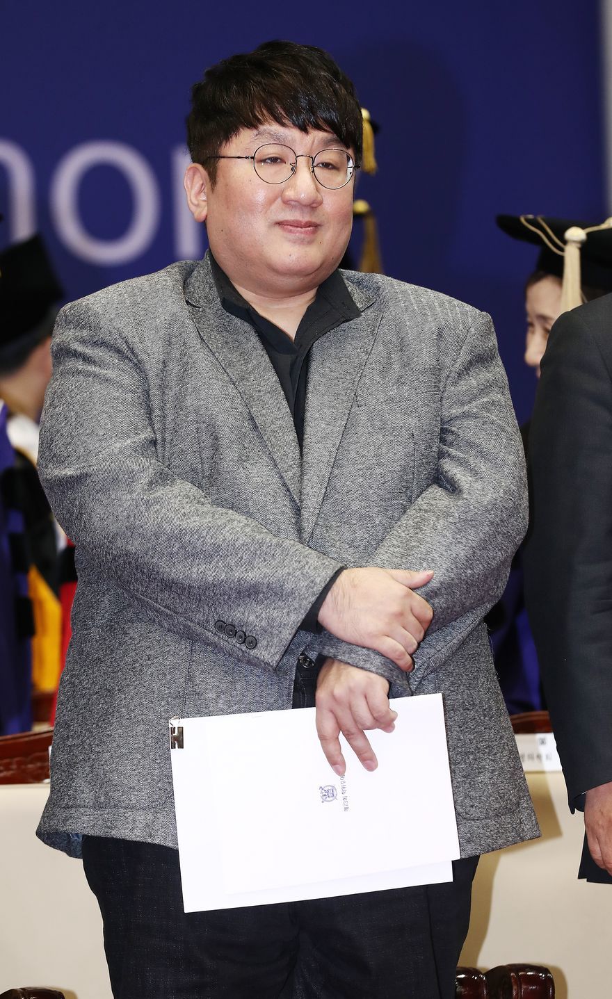 2022년 4월 28일, 경영학 정식 교육과정을 이수한 적은 없지만 HYBE를 세계적인 기업으로 성장시키고 대한민국 문화예술 산업을 확장하고, 혁신하는 데 기여한 점을 고려하여 서울대에서 경영학 명예 박사 학위를 받았습니다.