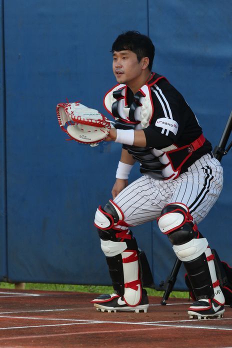 롯데 자이언츠 소속 포수. LG의 프랜차이즈 스타 대선배인 김동수-조인성으로 이어지는 공격형 포수의 계보를 잇는 선수였습니다. .