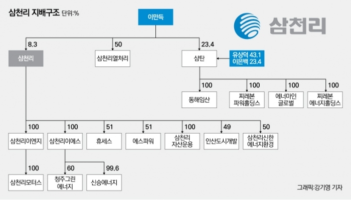 그러나 2014년에 다시 위기가 찾아왔습니다. 이는 2000년대 들어 도시가스 시장이 포화상태에 이르러 성장의 한계에 직면하자 자원개발, 민자발전 같은 도시가스 유관업종에 뛰어들었으나 모두 실패했기 때문입니다. 자원개발의 경우 이라크와 우즈베키스탄의 석유 가스에 투자했으나 유가 급락으로 16년에 1,000억 원에 달하는 손실을 입었고 민자발전에서는 LNG가 정부 정책에 따라 값싼 석탄, 원자력에 비해 급전 순위가 밀리면서 가동률이 급락하여 마찬가지로 재미를 보지 못했습니다. 다만 자원개발의 실패는 삼천리 계열에만 해당되고 애초부터 광산개발을 모태로 한 삼탄은 인도네시아에서 꾸준히 석탄을 캐며 매년 2~3,000억 원의 안정적인 현금을 창출하고 있습니다. 최악의 시기를 보낸 삼천리는 다행히 본업인 도시가스 산업의 수요가 반등하고 2017년 출범한 문재인 정부가 석탄, 원자력을 대체할 발전원으로 LNG를 지목하며 다시 회생의 기미를 보이고 있습니다. 앞서 언급했듯 삼천리그룹은 두 창업자의 동업으로 시작되었는데 기본적으로 이씨 가계가 삼천리, 유씨 가계가 삼탄에 대해 더 높은 지분을 소유하고 있습니다.