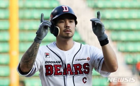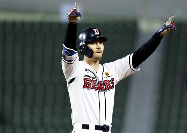 타격에 관해서 빠른 발+호리호리해 보이는 체격+센스있는 주루와 많은 도루 수로 인해 단타 생산에 주력하는 똑딱이라고 생각할 수 있으나, 사실 풀스윙으로 일관하는 타자다. 데뷔 후 2010년까지는 홈런이 하나도 없었으나 주전으로 자리를 확실히 잡고 나면서부터는 은근히 높은 장타율을 기록하는 모습을 볼 수 있습니다. 특히 2013년에는 순장타율이 . 150을 넘겼고, 2013년부터 3년간은 장타율 4할대를 유지했으며 2015년에는 두 자릿수 홈런을 기록한 바 있습니다. 최주환에게 밀려나고 타율이 처참히 떨어진 2017년에도 330여 타석에서 홈런을 7방 때려냈습니다. 잠실이 홈인 것을 생각하면 중장거리 타자까진 애매하지만, 똑딱이까지는 절대 아닌 수준, 김태형 감독의 타격 지론에도 딱 맞다. '덕 래타' 코치의 강의를 들은 2018년에는 타격기술까지 발전하여 5할의 장타율을 8월 1일 기준 기록하는 중. 다만 이 풀스윙 때문에 삼진이 은근히 많고 볼넷은 생각보다 적은 편입니다.