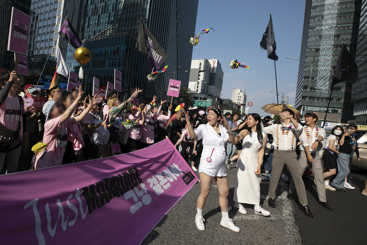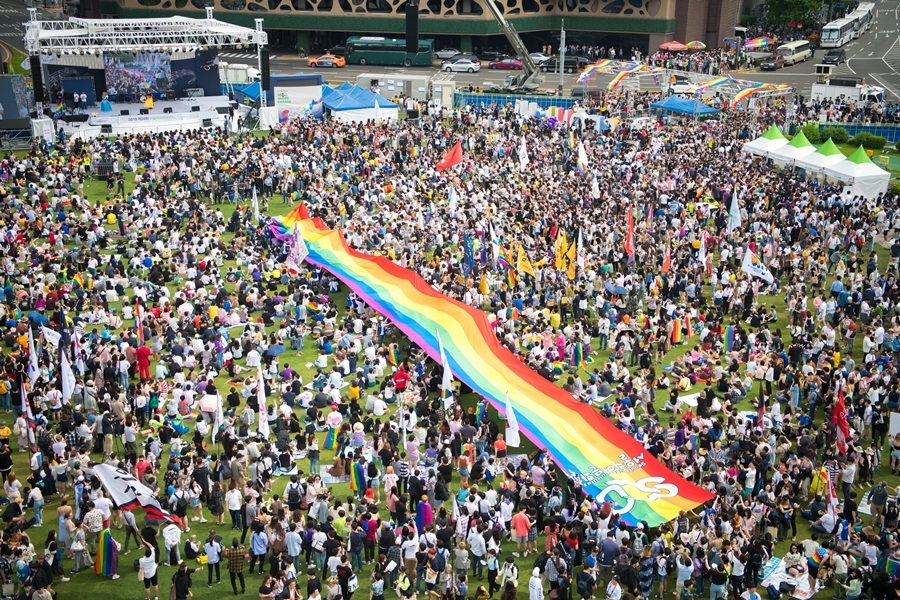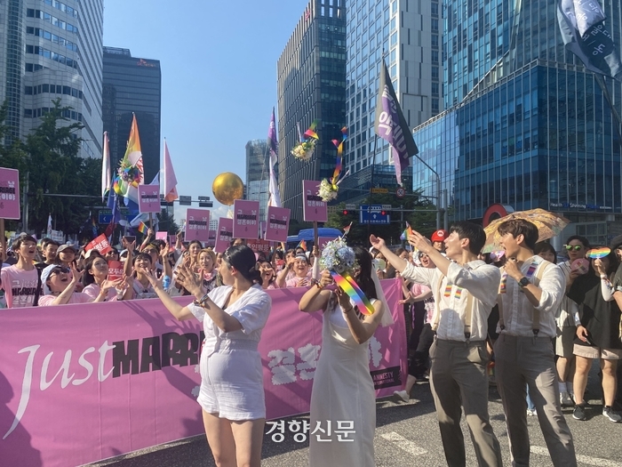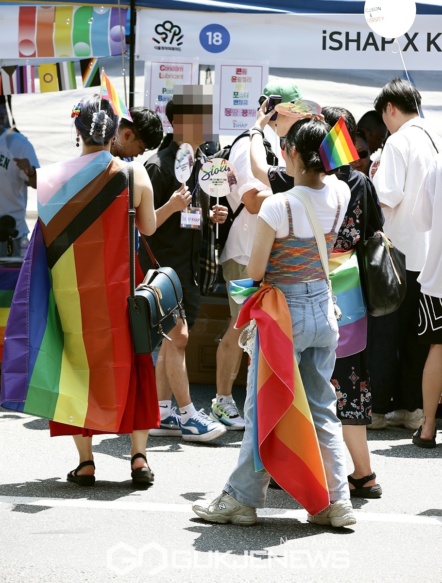 제24회 서울퀴어문화축제는 서울특별시의 서울 시청 앞 광장 사용 금지 조치로 을지로2가에서 진행됐습니다. 2015년 이후 서울광장이 아닌 곳에서 열린 건 이번이 처음입니다. 행사장에는 성소수자와, 연대하는 단체의 부스 50여 개가 설치됐는데 미국·영국·캐나다 대사관 등도 참여했으며 각국 대사들은 응원 메시지도 보내왔습니다. 주최 측은 을지로 일대에 약 15만 명이 모였다고 추산했습니다. 5만여 명의 참가자들은 을지로에서 시작해 명동역을 지나 서울광장까지 행진했습니다. 1 2 3 4 한편 바로 인근에서 종교단체와 보수단체의 퀴어축제 반대 집회도 동시에 열렸습니다. 경찰은 50개 부대 3천여 명을 투입해 퀴어축제 행사장에 펜스를 설치하고 집회단체들 간의 동선을 분리한 덕에 별다른 충돌 없이 마무리됐습니다. .