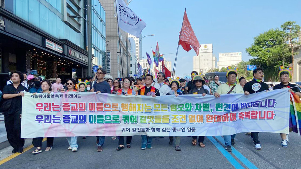 축제 내용이 내용이다보니 성소수자를 싫어하는 개신교 근본주의 및 우파 단체 측이 방해를 많이 합니다. 그래서 주최 측은 이들에게 개최장소를 뺏기지 않기 위해 며칠간 경찰서 앞에서 노숙까지 감행하면서까지 행사 개최 신고를 합니다. 카운트다운 끝나자 경찰서로 밀려들어간다. 이는 대구퀴어문화축제 운영진의 2017년 6월 24일 축제를 개최 30일 전날인 5월 25일 자정에 맞춰 경찰서에 신고하는 영상입니다. 이런 상황은 매년 각지 축제 때마다 각지 경찰서와 경찰청에서 벌어지고 있습니다. 2019년 서울에서는 대한애국당 태극기 부대 세력과 새치기 및 쇠사슬 소동이 벌어져 서울퀴어문화축제 조직위에서 급히 이 '지정학적으로 중요한' 경찰서 민원실 1번석을 지킬 농성자를 모집하기도 했습니다. (오마이뉴스 기사)개신교 단체를 필두로 하는 맞불 집회 세력이 2017년 쯔음 이후부터 종교색을 빼려는 노력하기도 하지만 그래도 티납니다. 퀴어축제 반대 집회, 개신교색 빼려 안간힘 각 교회에 공문을 보내고 비용을 모으는 등, 매우 조직적으로 움직이고 있으나 정작 집회 현장에서는 대중가요를 부르고 "소리 내어 기도 금지"를 시킵니다. 그런 맞불 집회 참가자의 대부분은 개신교인이지만, 인터뷰를 하면 "교회 아닙니다. 학부모들이다"라고 주장하는 모습도 보입니다. 서울시 공무원에서도 "다수가 퀴어축제 반대한다"는 거짓 성명을 발표한 바가 있으나, 내부 조사 결과 성명에 참여한 인원은 개신교 신자인 17명으로 밝혀졌으며 노조 측에서는 과잉 대표라고 밝혔습니다. 서울시 공무원 '다수'가 퀴어축제 반대한다는 기독 공무원의 거짓말 반면 불교, 소수 개신교(특히 성공회 정의평화사제단)와 천주교 단체에서는 인권을 위해 지지하고 축제부스에 참가하기도 합니다.