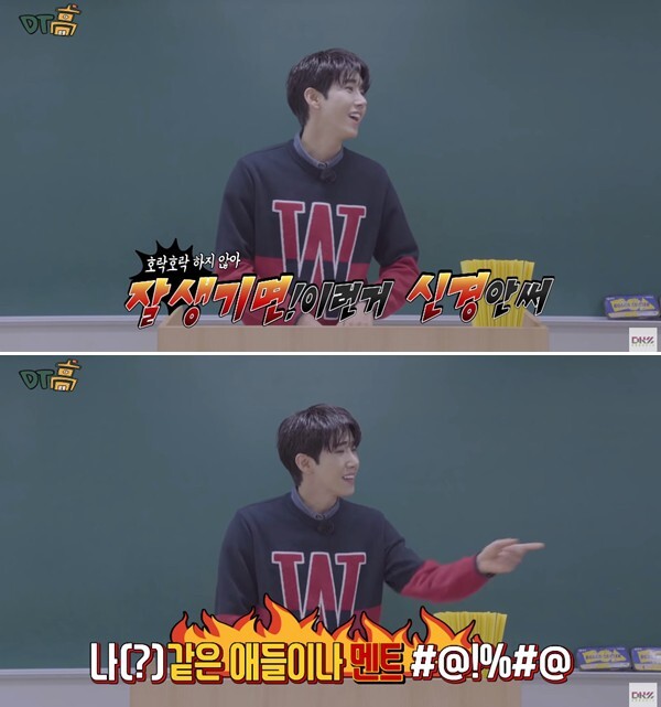 어머니가 아이돌 가수가 아이돌 답지도 않고 가수답게 노래도 못 부른다면서 디스하셨는데, 본인도 부정 못 했습니다. 이후 이어진 말에서 앞으로 자신을 가수가 아니라 예능인, 아니 "그냥 좀 웃기는 방송인"으로 소개하고 다닌다고 승화시켜 말해 비슷한 입장을 겪고 있는 MC였던 김종민을 뒤집어놓았습니다.