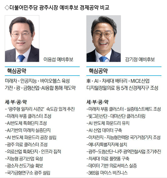 2021년 12월 현 광주 상황에 대한 강한 비판을 곁들이며 대형 쇼핑몰 입점 등 청년층의 표심을 공략하고 있습니다. 자신의 페이스북에서 디즈니랜드 공약을 꺼낸 배경과 관련해 "젊은이들이 서울로 간다. 여러 까닭이 있겠지만 젊은이들은 간단히 말합니다. '노잼이잖아요"라고 언급했습니다. 이어 "이대로 가다간 청년들이 다 떠나고 산천초목만 고향을 지키겠다"며 "노잼이 아니라 꿀잼의 고향, 꿈을 찾아 떠나지 않고도 꿈을 실현하는 도시를 만들겠다"고 밝혔습니다. 2022년 3월 18일 예비 후보로 등록하며 더불어민주당 당내 경선이 조기점화될 것으로 보입니다. 2022년 3월 21일 KBS 광주방송총국 의뢰로 한국리서치에서 3월 17일부터 19일까지 진행한 여론조사 결과 강기정 전 청와대 정무수석 29. 2%, 이용섭 전 광주시장 27. 7%을 기록한 것으로 나타났습니다. 2022년 3월 22일, 광주광역시 서구 상공회의소에서 공식 출마 선언을 했습니다.