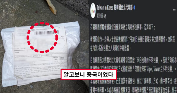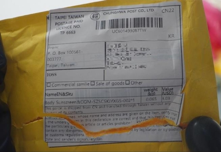 이전에도 이곳에 대만발 우편물이 배송된 적이 있었는데, 당시 우편물에는 화장품이 들어있었다고 합니다.