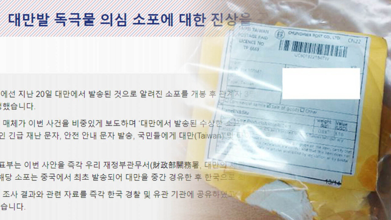 - 대만에서 온 의문의 우편물…뜯었더니 '호흡곤란·사지떨림'