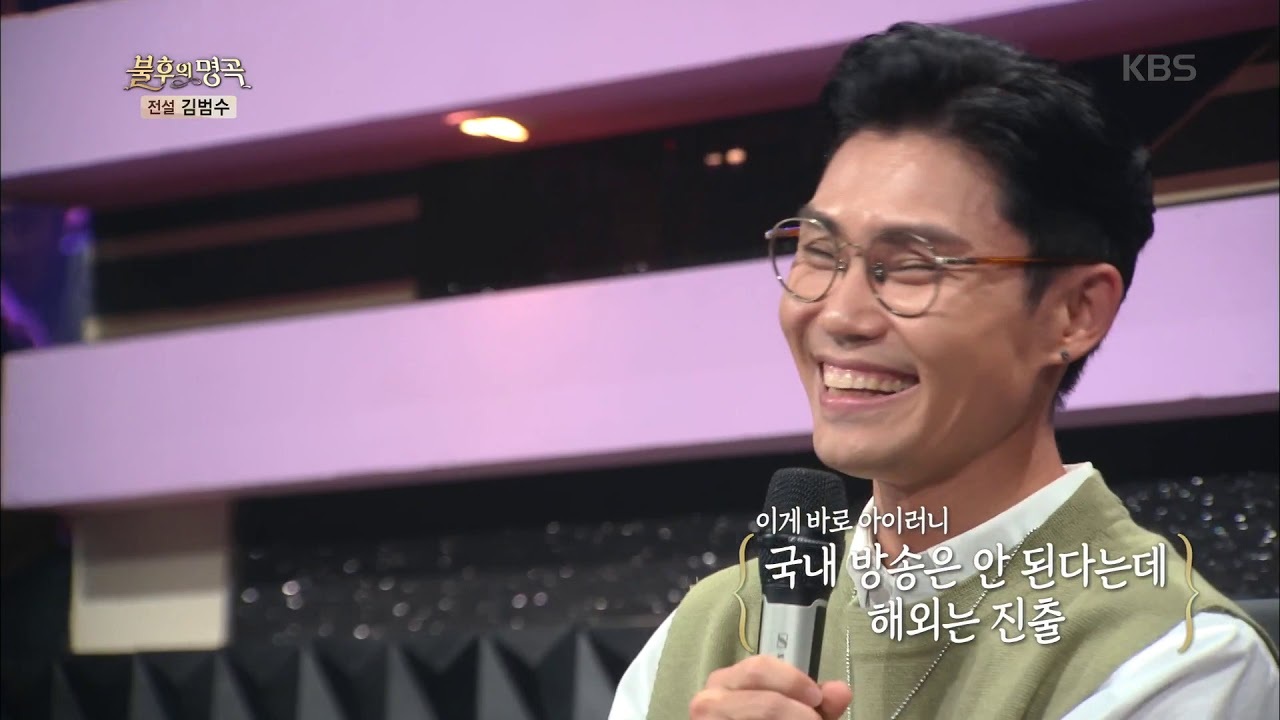 또한 카네기 홀에서 성악을 부를 정도의 엄청난 성악 실력을 가지고 있습니다. 2019년에 진행한 20주년 기념 콘서트인에서 오페라 '투란도트'의 아리아인 'Nessun Dorma'를 완전한 성악 발성으로 불러 많은 이들을 놀라게 했습니다. 데뷔한 지 20년이 넘었는데 아직까지 <보고싶다>를 넘을 만한 대표적인 히트곡이 나오지 않고 있다는 점이 안티들의 주 까임거리다. 음색과 연관시켜 평범한 음색이라 대중들에게 어필이 안 된다고 까기도 합니다. 하지만 이는 다소 비약인 것이, 김범수의 음색은 굉장히 독특한 편입니다. '나는가수다'에서 김범수가 섭외 1순위였던 이유가 바로 이국적인 음색때문. 애초에 호흡을 많이 섞는다든지 해서 '개성'을 만들 지는 않지만 본인 고유의 음색은 성대접촉률이 높을 수록 진하게 나타납니다. 예를 들어 또다른 본좌급가수 박효신 또한 개성은 3~4집 시절이 가장 확실하지만 본인고유의 음색은 뮤지컬 혹은 야생화 등의 최근 곡에서 더 진하다고 할 수 있습니다. 성악가들은 음색이 아주아주 진하지만 개성은 적다는 것도 마찬가지.
